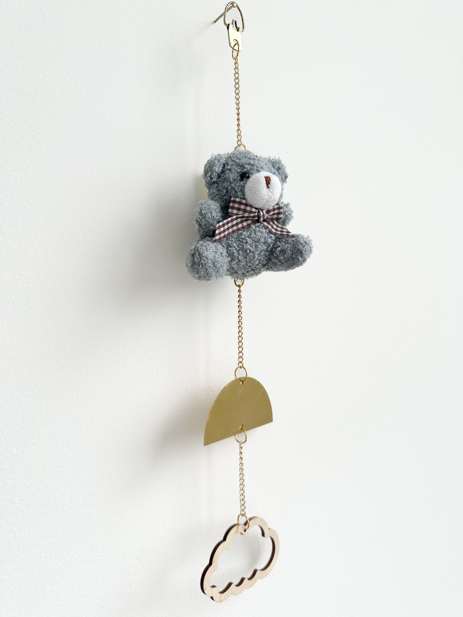 Add instant personality to any room with this delightful wall decor collection! The star of the show is a soft blue teddy bear plushie dressed in a cheerful checked bow tie, paired with whimsical brass moon accent and a charming wooden plywood cloud. Whether you're styling a nursery, bedroom, or living space, this playful trio brings warmth and character that appeals to both little ones and grown-ups. Perfect for anyone looking to inject a bit of cosy magic into their surroundings.