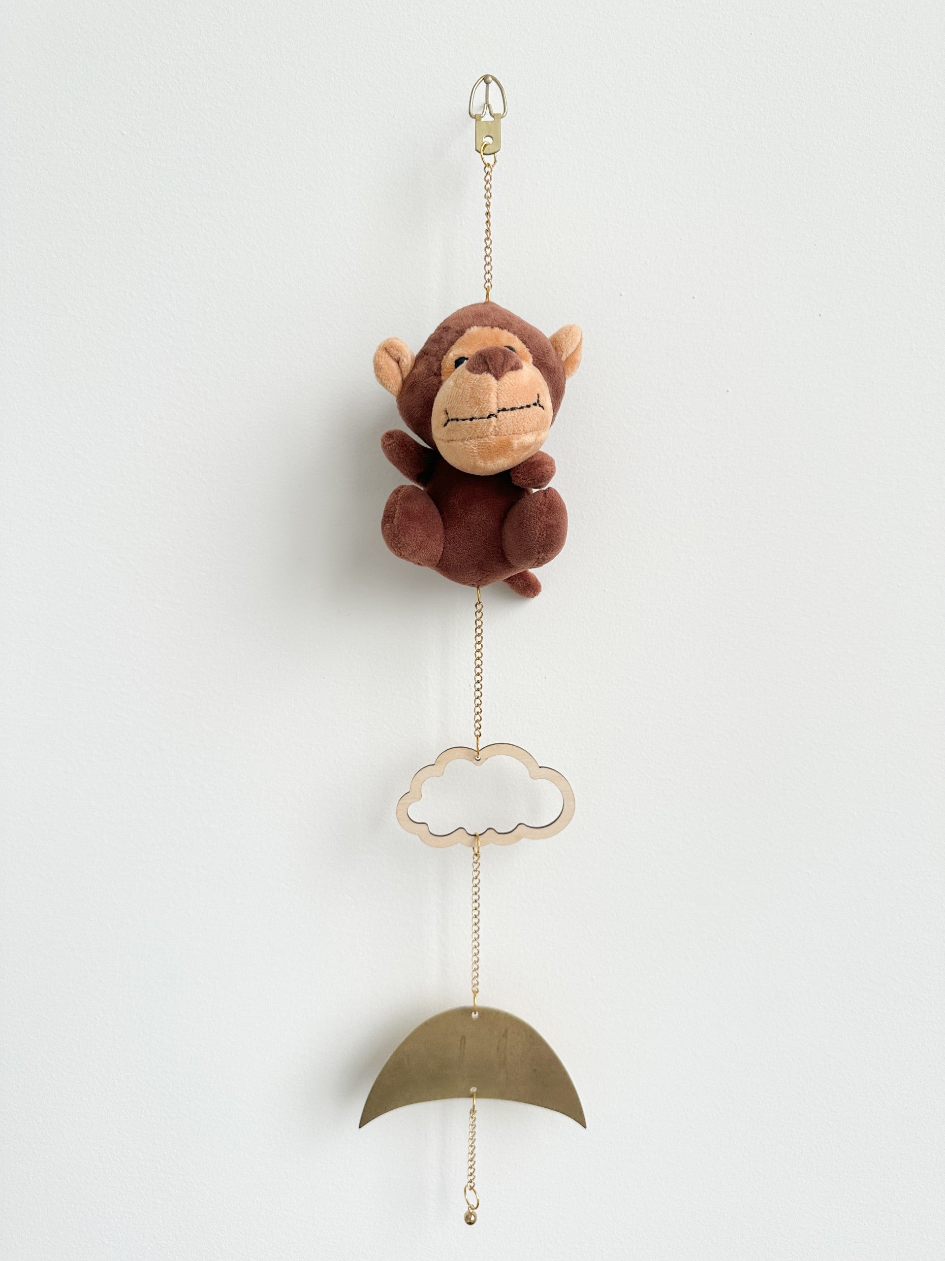 Meet your little jungle friend! This adorable soft monkey plushie brings warmth and whimsy to any space. Paired with charming brass moon shapes and a wooden plywood cloud, it creates a delightful wall display that sparks imagination. Perfect for nurseries, kids' rooms, or anyone who loves quirky, nature-inspired decor. Mix and match the pieces to design your own dreamy scene - playful, cosy, and utterly charming.