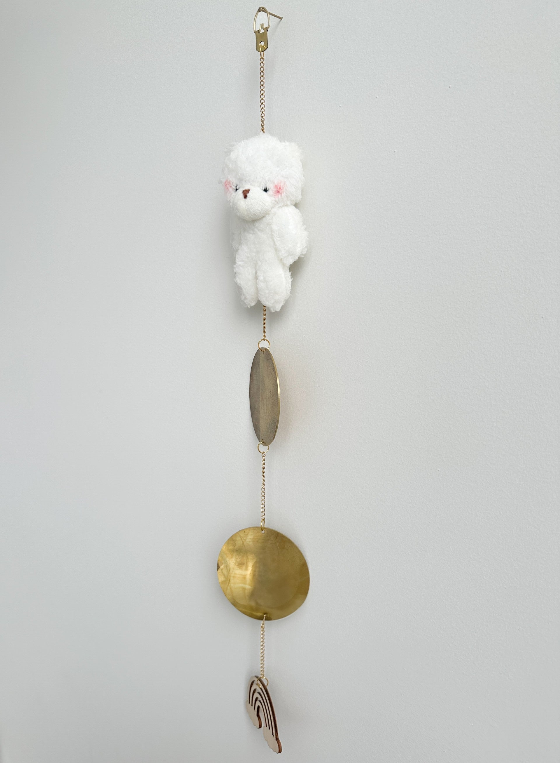 We source our solid brass from a local supplier using their offcuts imported from Europe, then have them cut into our Plush & Shine shapes. You may notice small marks or colour variations - these are part of the brass’s natural beauty. Each piece is then handmade and assembled with the plushie, using careful joinery details to create a one-of-a-kind piece that’s both sustainable and full of character.