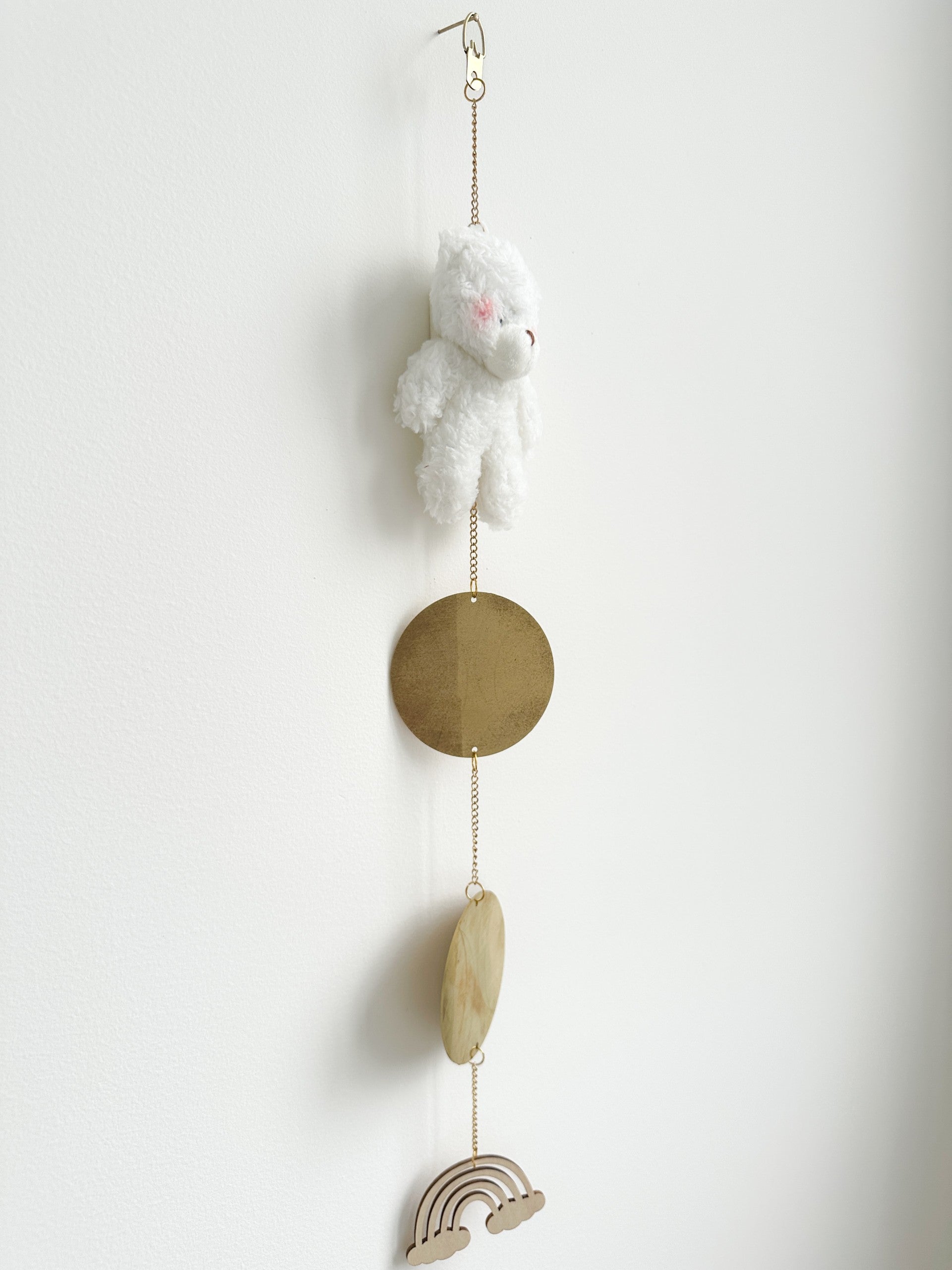 Meet the White Blush Bear – a delightfully quirky wall decor set that brings instant joy to any corner! This charming collection pairs a soft white and blush teddy plushie with gleaming brass moon accents and a sweet wooden plywood rainbow and cloud. Perfect for nurseries, bedrooms, living rooms, or anywhere craving a dash of adorable flair, it works beautifully for both little ones and grown-up kids at heart. Create a cosy, whimsical vibe that'll have everyone grinning at your impeccable taste in cute-factor décor.