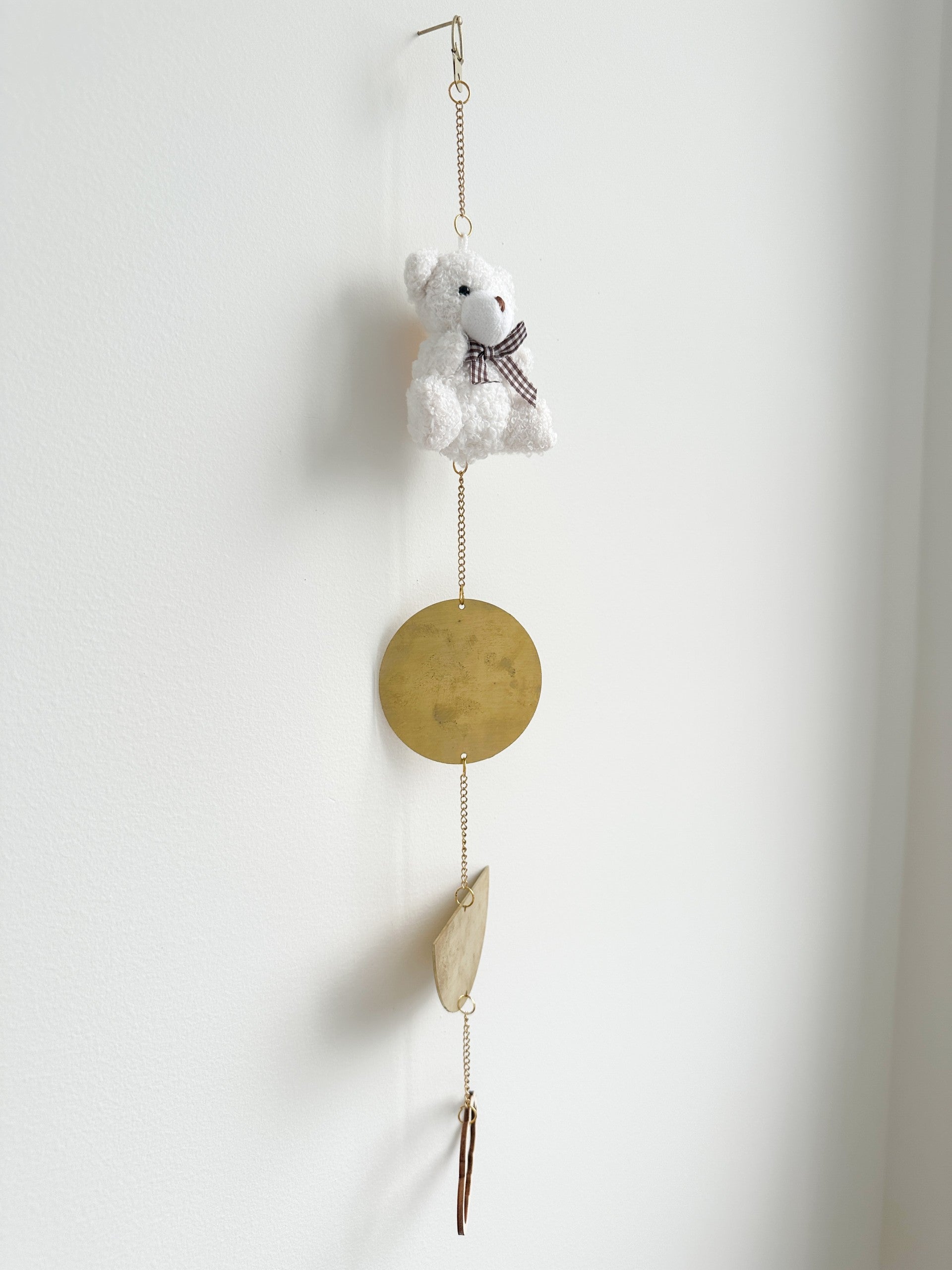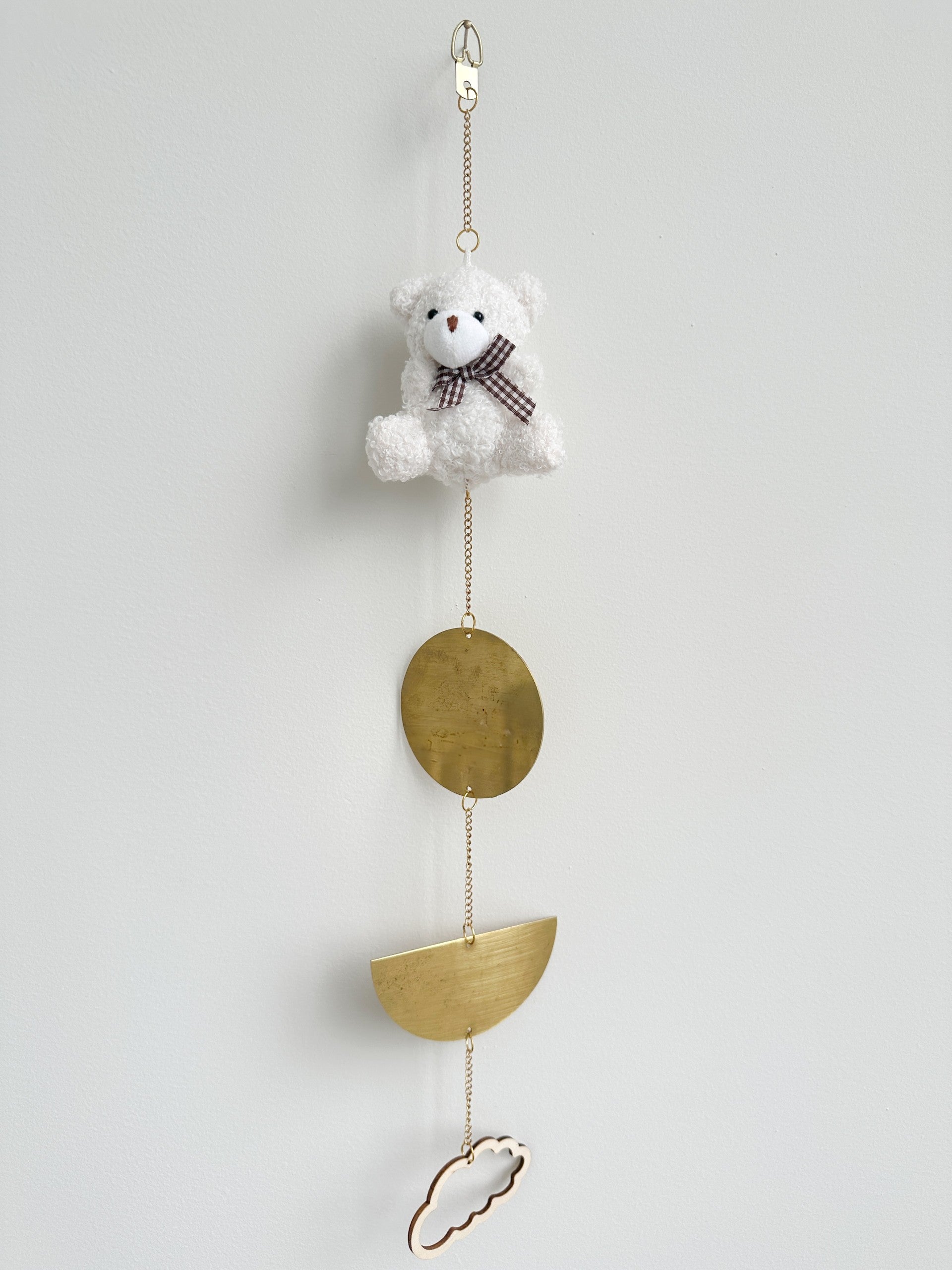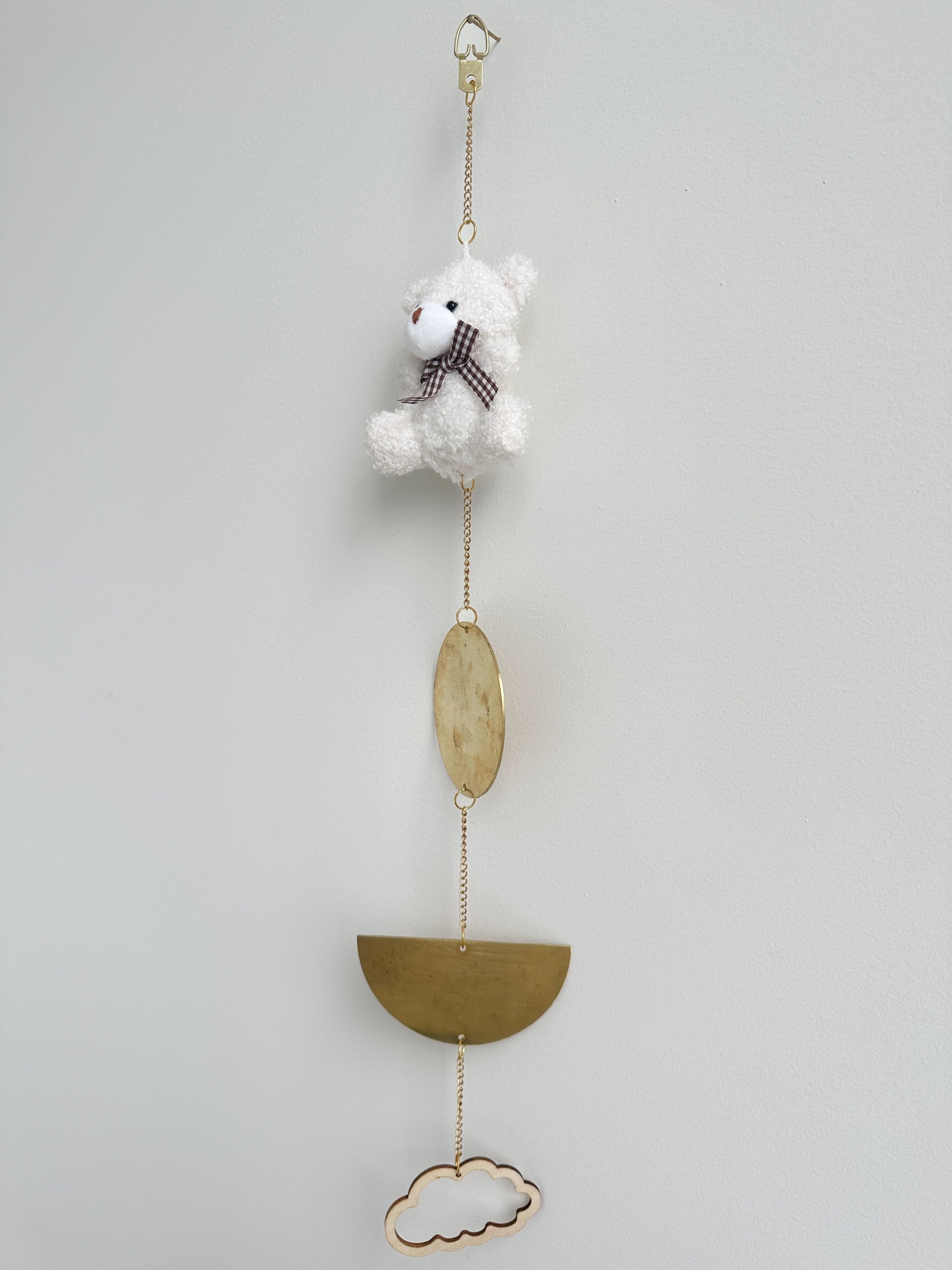 Bring a dash of adorable charm to your walls with this delightful set! A white teddy bear plushie wearing a stylish bow tie teams up with gleaming brass moon accents and a cosy wooden plywood cloud to create the ultimate cuteness corner. Whether you're sprucing up a nursery, bedroom, or any room that could use a playful pick-me-up, this trio delivers instant personality and warmth. Perfect for anyone who believes spaces are better with a little extra sweetness and whimsy.